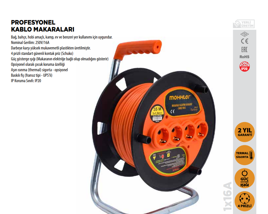 | Model | 20m TTR 3×1.5 mm, 20m TTR 3×2.5 mm, 30m TTR 3×2.5 mm, 35m TTR 3×1.5 mm, 40m TTR 3×2.5 mm, 50m TTR 3×1.5 mm, 50m TTR 3×2.5 mm, BOŞ MAKARA 50m Kapasiteli |